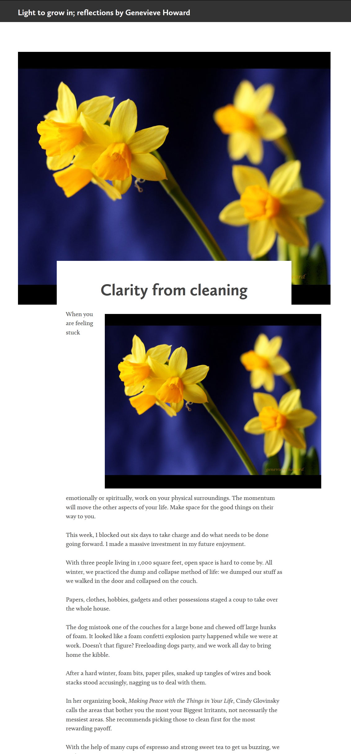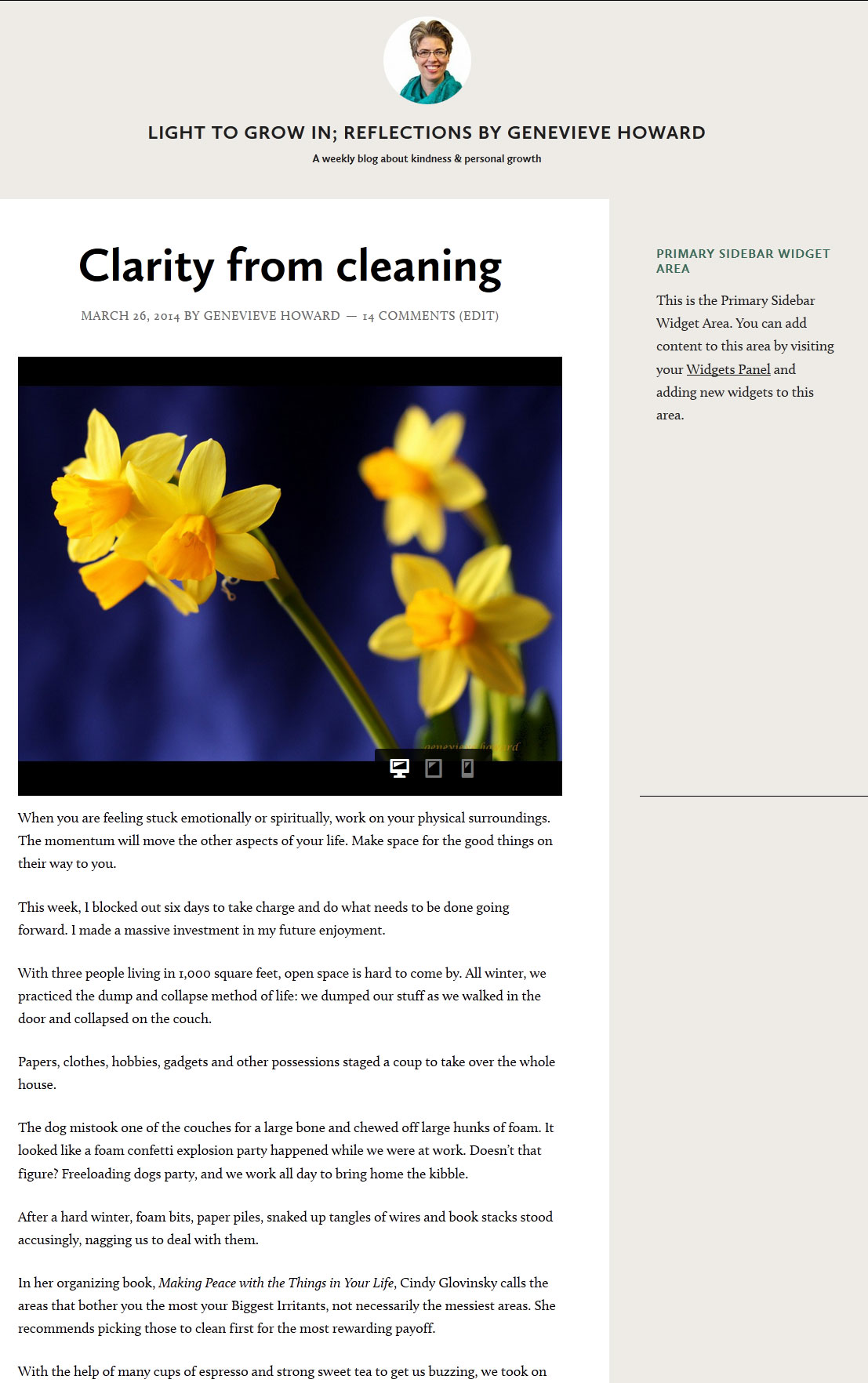 On Wed, Apr 2, 2014 at 11:01 AM, Light to grow in; reflections by Genevieve