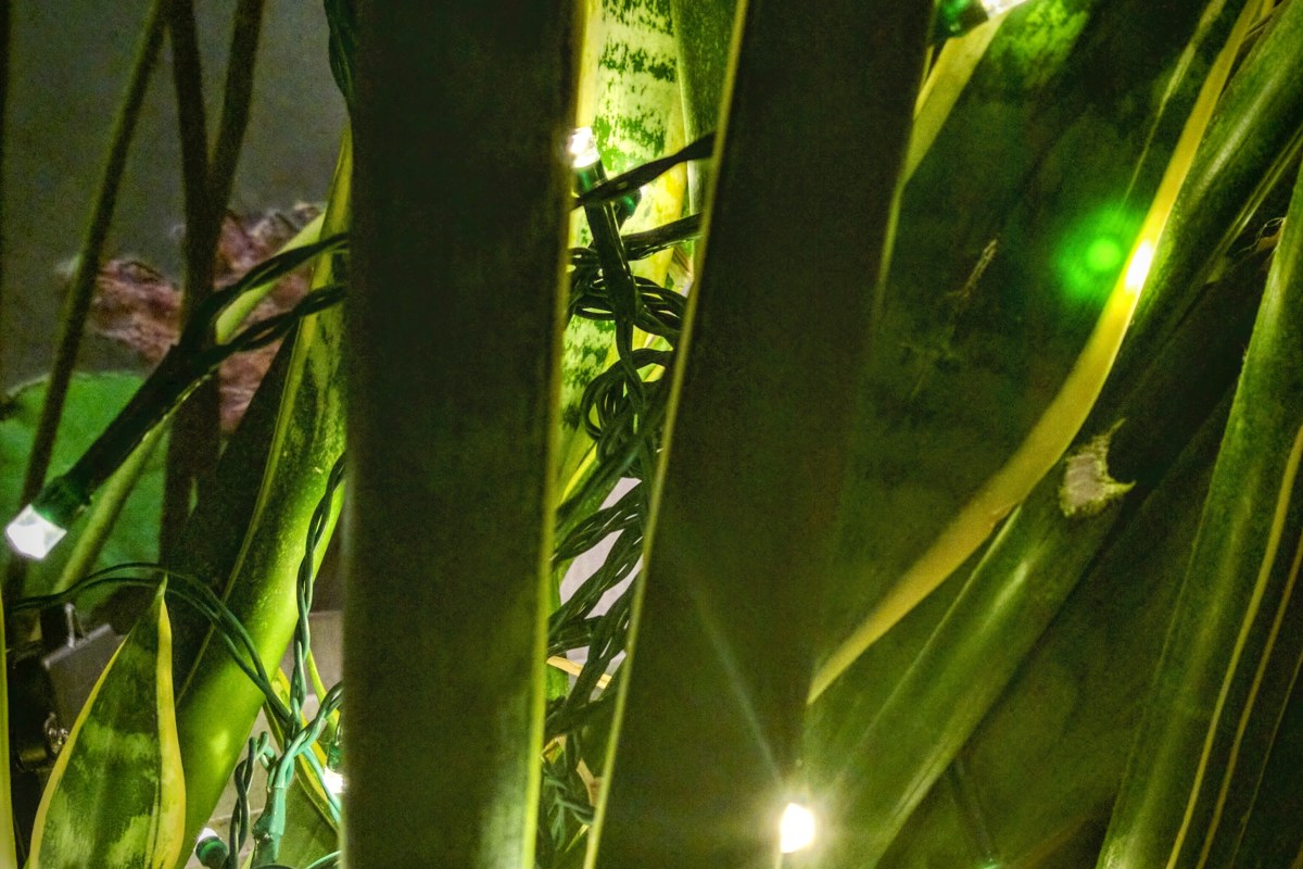 I also got some twinkle lights for my beloved snake plant and some crackle glass lights for the wall over where my chair would go.