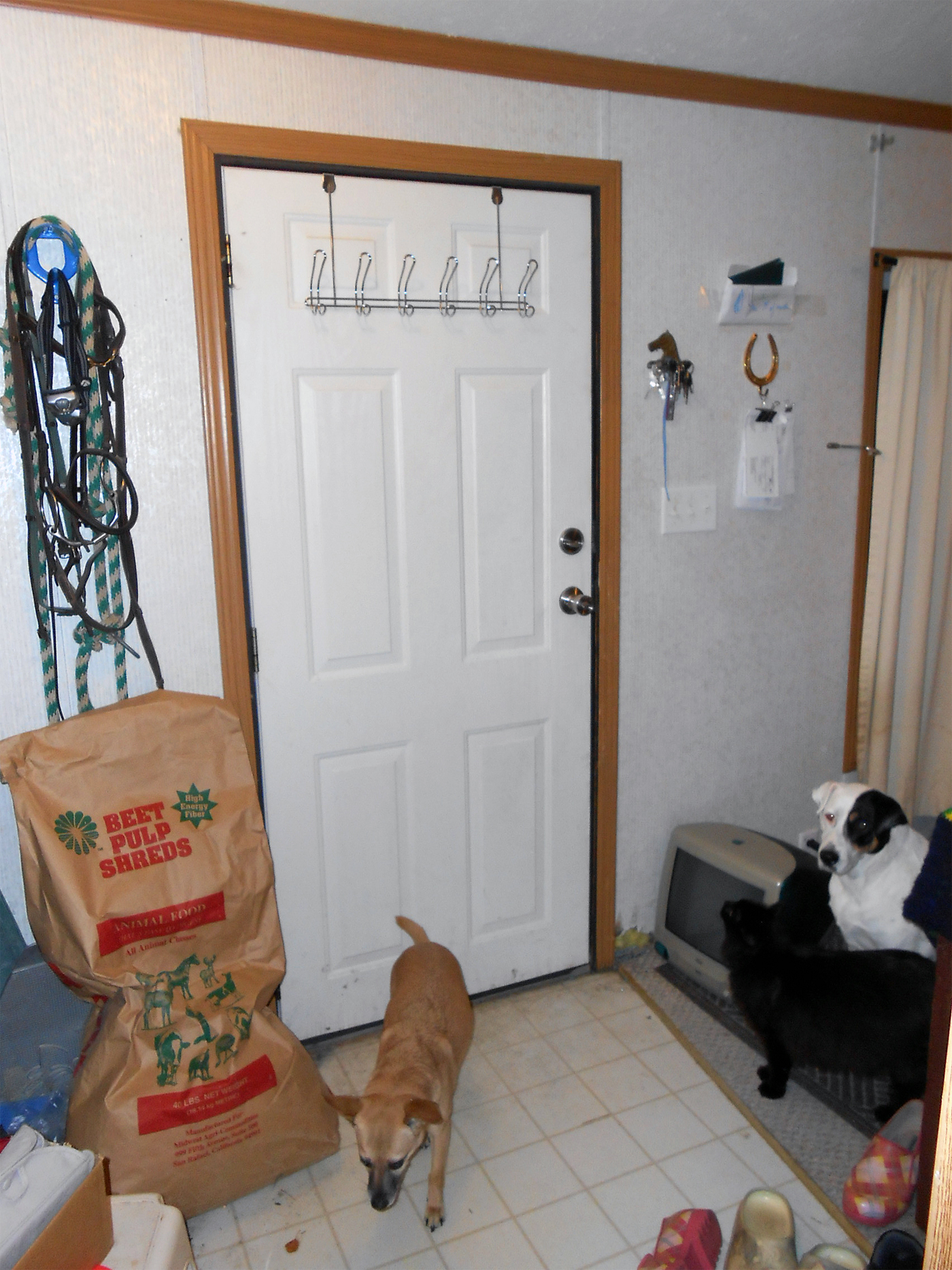 Although most of the stuff for the horse and pony is in the barn, we keep the saddle, bridle and beet pulp in the house. Don’t you have a bag of beet pulp by your front door?