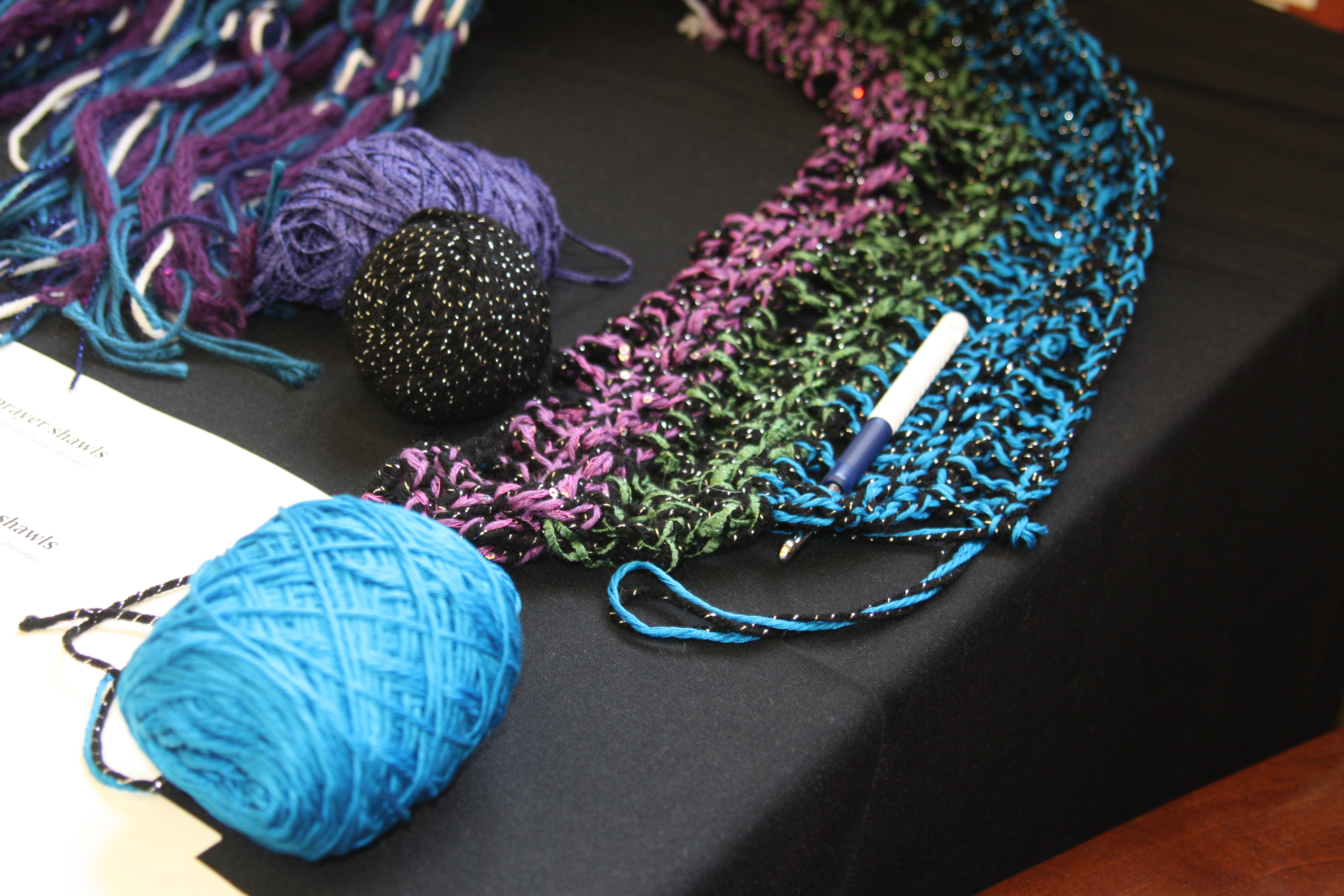 As I started to work on it, I realized I needed more colors. I went to the store for bright yellow and a neon variegated yarn called Blacklight.